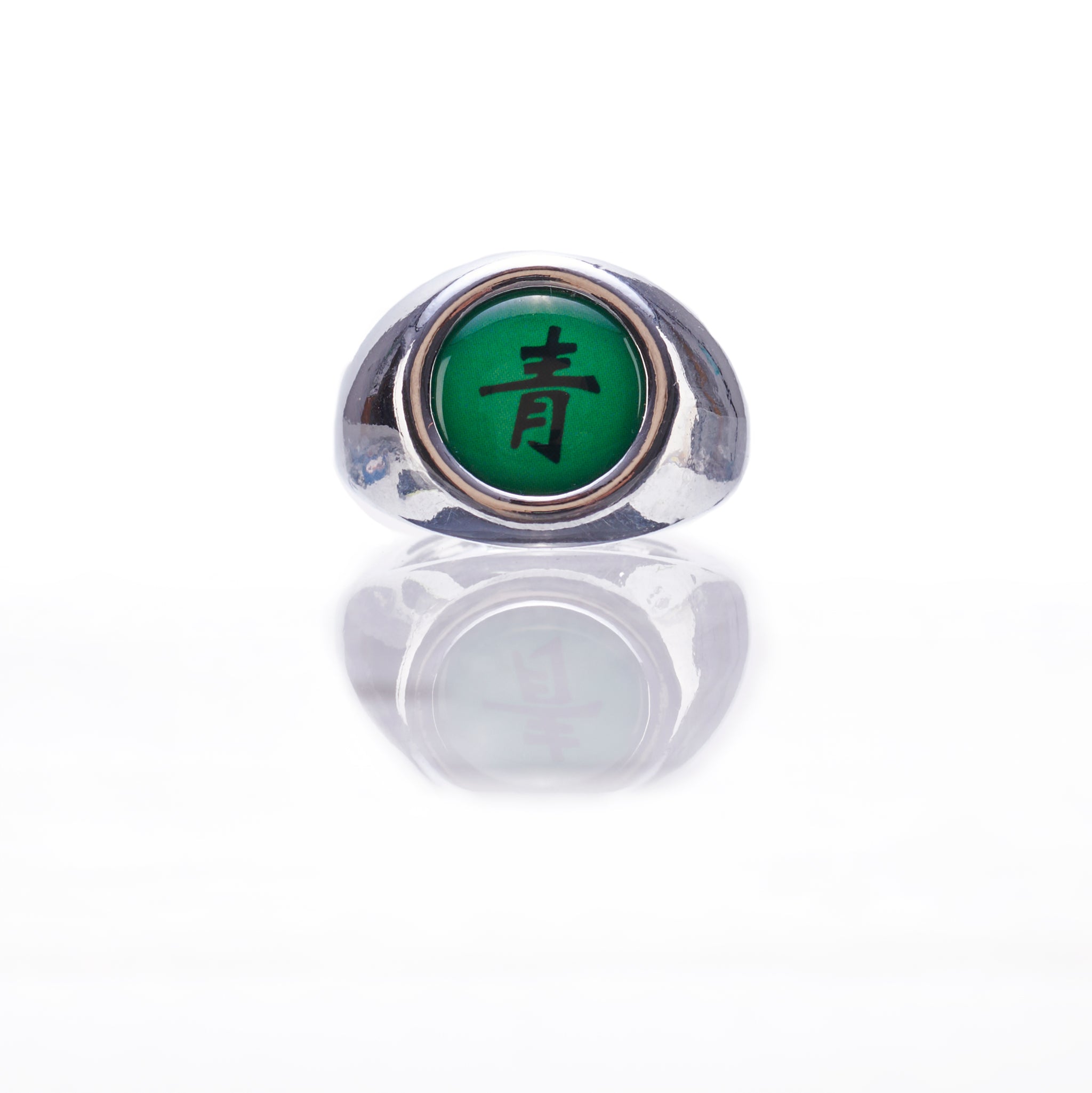 Deidara's Ring is blue with the Japanese Kanji 青 (lit. “ao” and “shō”) which means “Blue” and “Green” in English and must be worn on the right index finger.