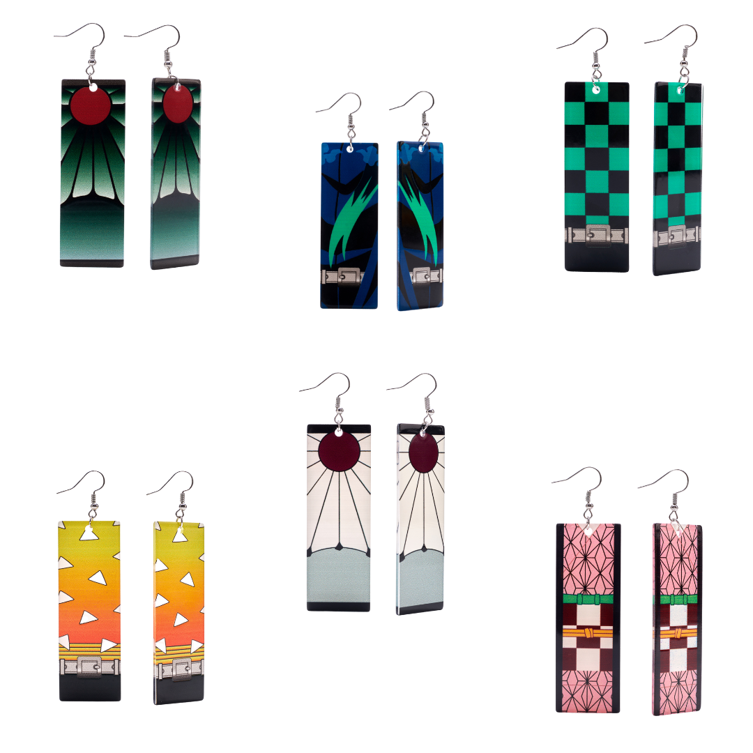 This Combo Pack Includes : 1 Nezuko Kamado Earrings +1 Zenitsu Earrings +1 Hanafuda Tanjiro Earrings + 1 Inosuke Earrings+1 Kimetsu No Yaiba Earrings + 1 Tanjiro Demon Slayer.